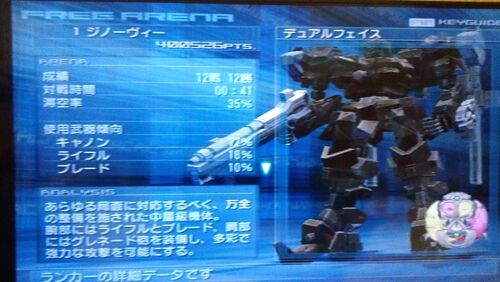 アリーナランキング1位のジノーヴィーにいきなり挑んでみた。 ただの二脚でバズーカを持っており、火力と装甲が高いAC。手持ちの兵装を色々試して、こちらもバズーカとライフルで挑み10戦ほどして1戦残り1000台まで追い込んだが、半分は相手4~5…