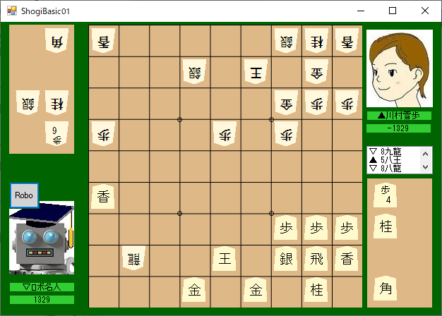 将棋ベーシック改の最新版に自己対局テストを導入しました。終局までやらせてみようとすると永久ループでどうなっているか分からないので、一手ずつ先後と指させて視認すると、この局面で千日手になるものの、千日手の判定が無く永久ループでした。