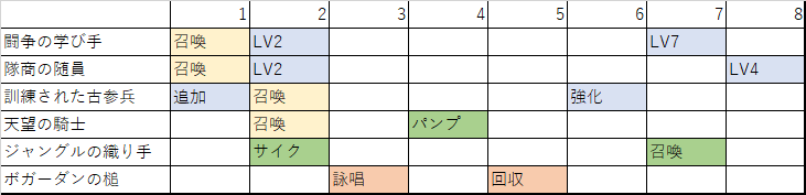 闘争の学び手がたくさんあれば解決しそうな話だが、1枚だけのキラレアなのでウチでは隊商の随員、訓練された古参兵、天望の騎士の他にデッキのもうひとつのコンセプトであるボガーダンの槌と候補に挙げて結局はいらなかったジャングルの織り手も表にまとめた。
